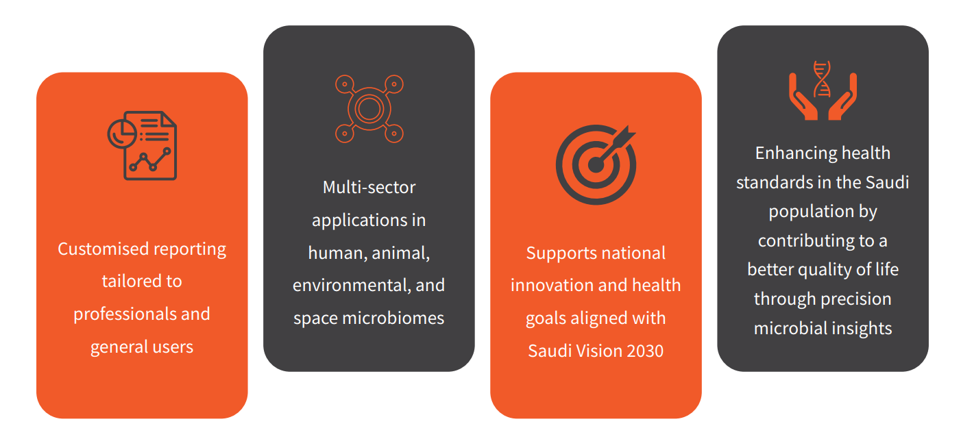 Our mission is to advance microbial science by providing end-to-end solutions — from DNA isolation to high-throughput sequencing and AI-driven analysis — serving human, animal, environmental, and space-related research, and contributing to innovation and sustainability in line with Vision 2030.