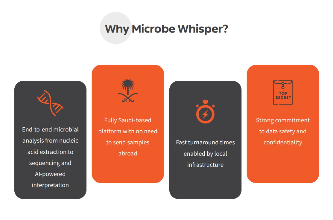 Microbe Whisper is a Saudi-based company specialising in metagenomic and microbiome analysis for human, animal, environmental, and space-related samples. We integrate advanced sequencing technologies with artificial intelligence to deliver high-impact microbial insights. Our work supports Vision 2030 by advancing precision health, scientific innovation, and sustainable biotechnology to improve quality of life.